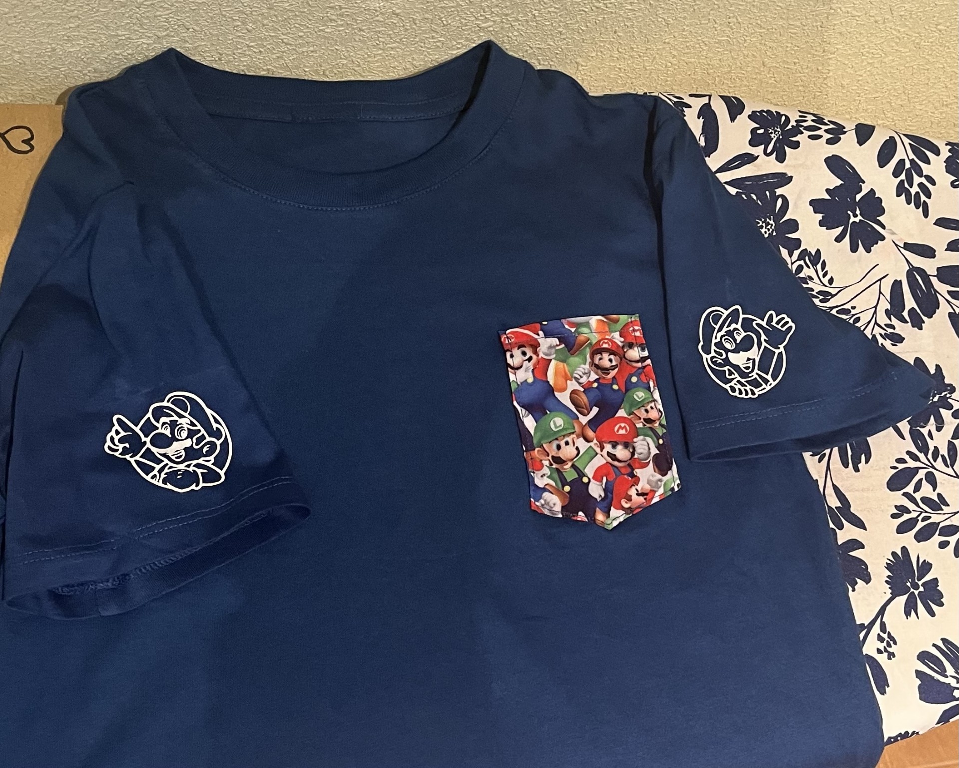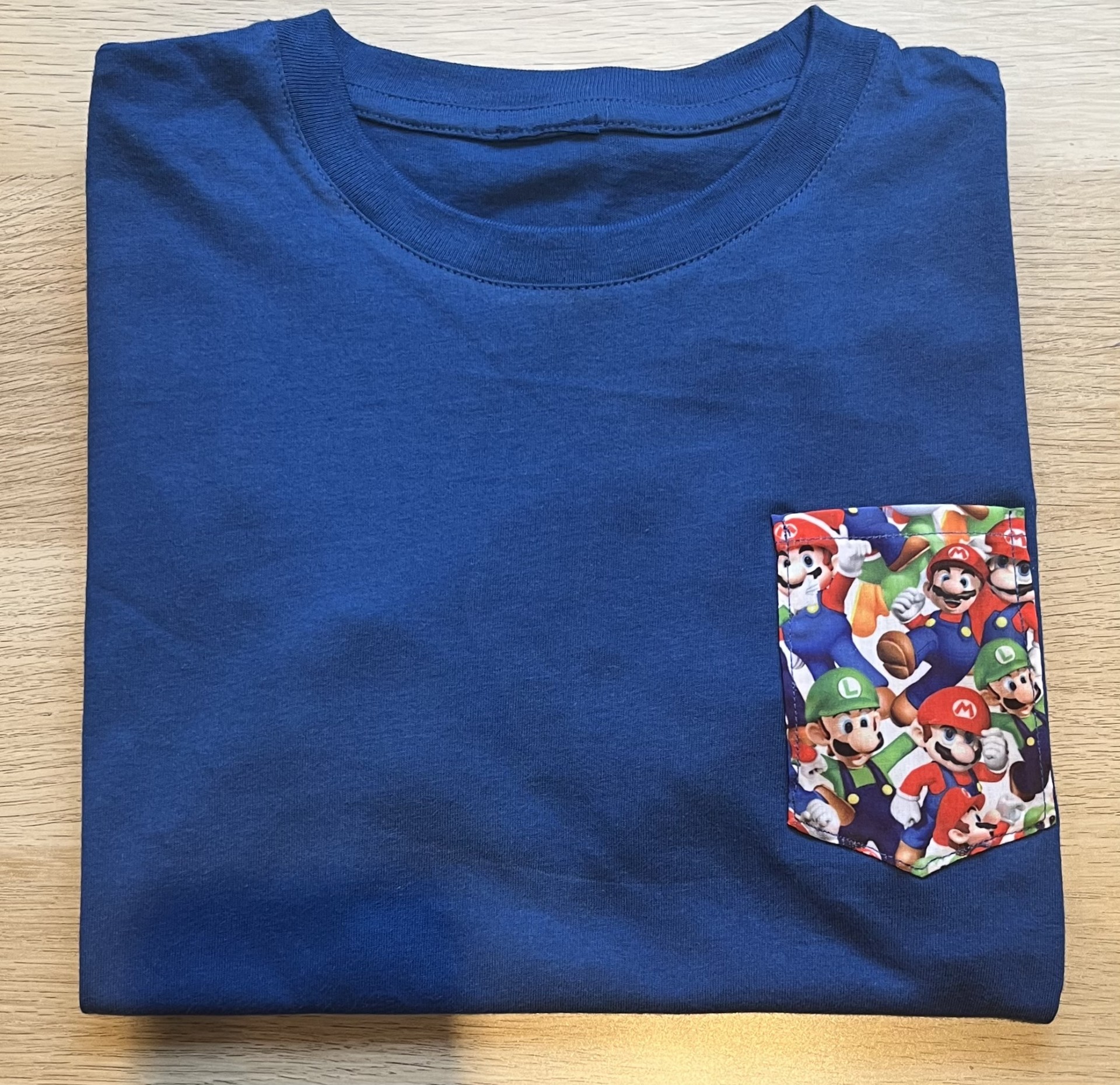 Camiseta de manga corta con Bolsillo y logos en vinilo en mangas. Especificar talla en información adicional, al finalizar pedido.
